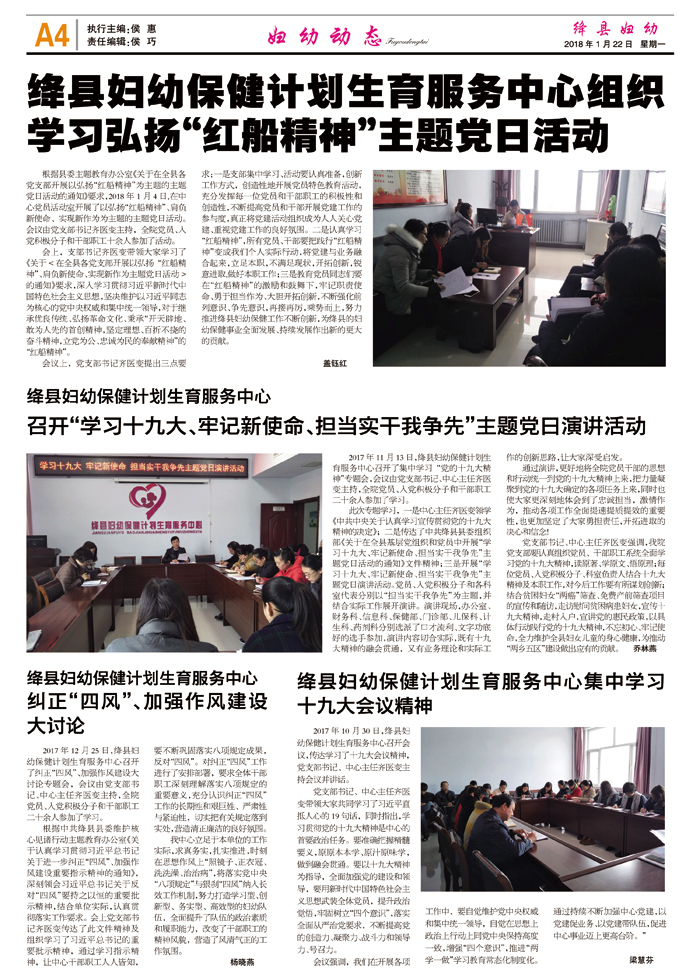 绛县妇幼保健计划生育服务中心组织学习弘扬“红船精神”主题党日活动