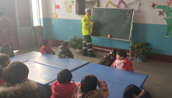 本报讯 1月25日,县公安局交警大队机动中队民警到辖区农村幼儿园,为娃娃们上好第二学期最后一堂交安课。