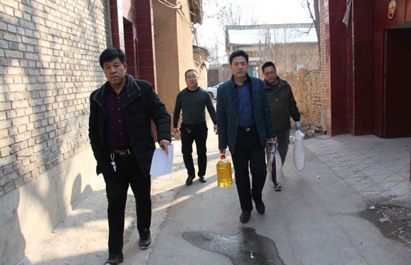 本报讯 2月6日,县招商引资局局长徐久森带领工作人员到扶贫帮扶村南樊镇史村,开展扶贫帮扶慰问活动,为贫困户送去米、面、油等生活必需品和节日的祝福。