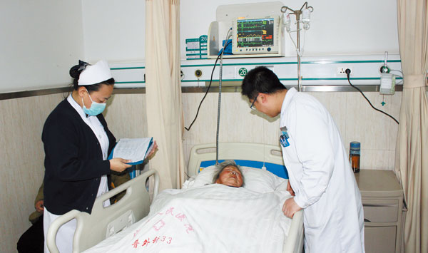 普外科王主任带领夜班护士在进行每日的夜间病人巡查工作。