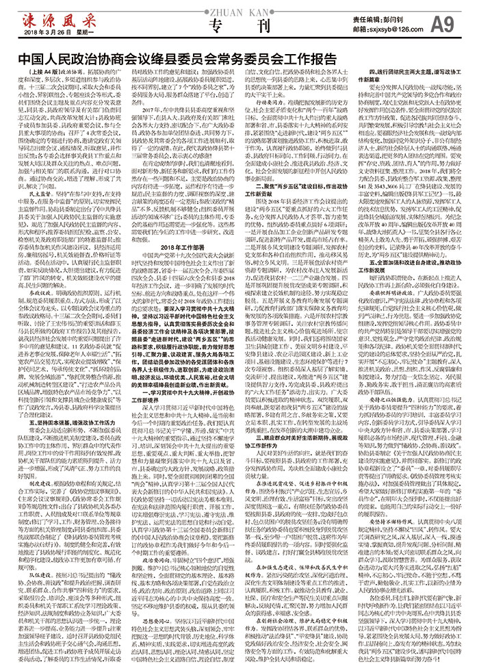 中国人民政治协商会议绛县委员会常务委员会工作报告