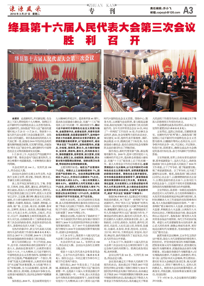 绛县第十六届人民代表大会第三次会议胜利召开