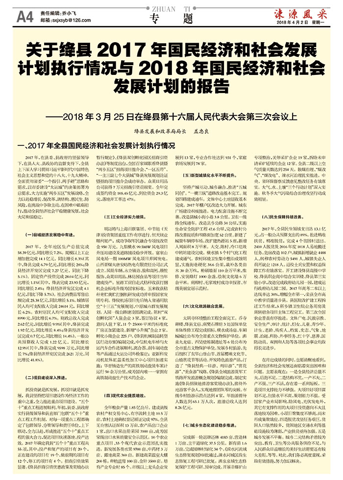 关于绛县2017年国民经济和社会发展计划执行情况与2018年国民经济和社会发展计划的报告