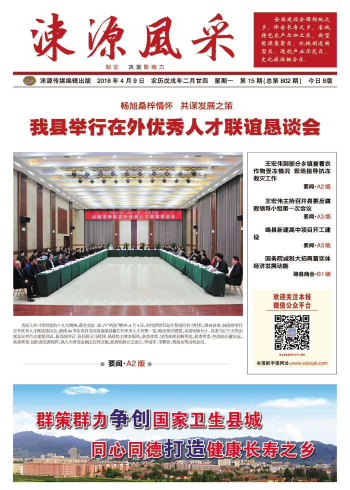 《涑源风采》贴近,决定影响力 涑源传媒编辑出版 微信:suyuanfengcai 邮箱:sxjxsyb@126.com 电话:6523423