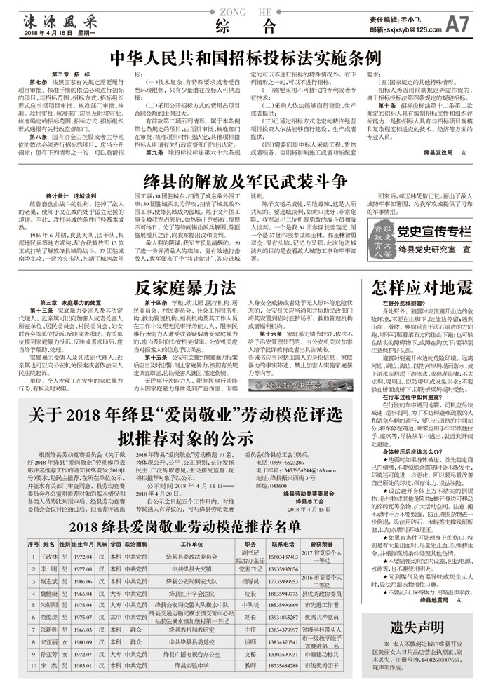 关于2018年绛县"爱岗敬业"劳动模范评选拟推荐对象的公示