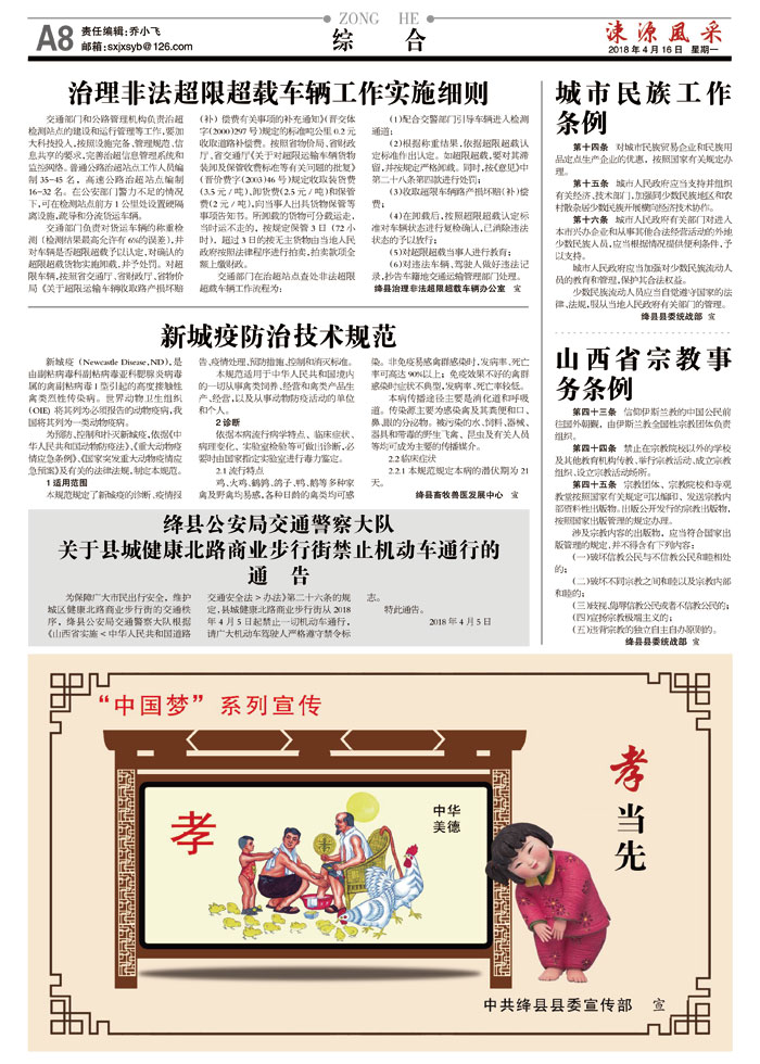绛县公安局交通警察大队关于县城健康北路商业步行街禁止机动车通行的通告