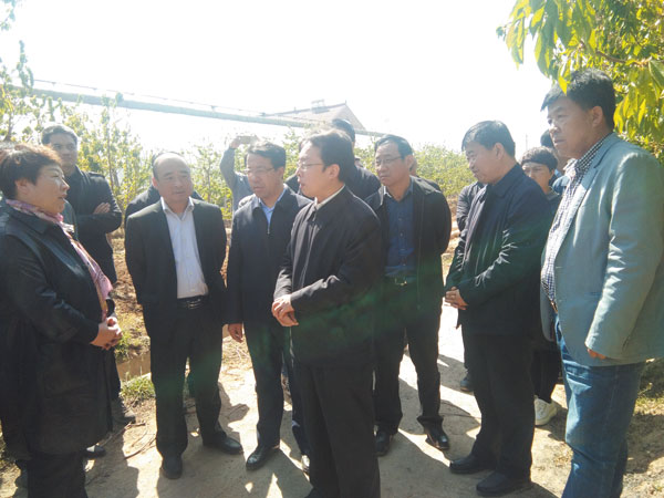 4月8日,市长朱鹏带领相关部门负责人深入我县,实地察看低温冻害情况,一线督导抗冻救灾工作。县委书记王宏伟,县委副书记、县长薛玉马陪同。