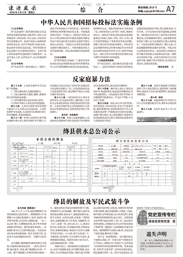 绛县供水总公司公示