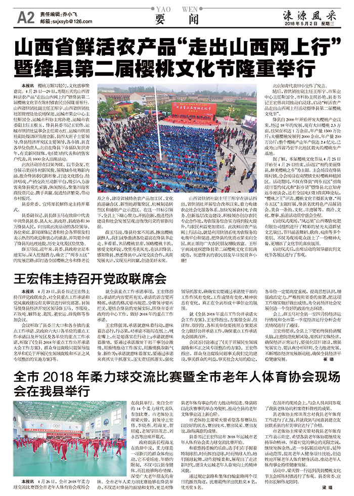 县老体协主席田茂忠对我县老年体育工作进行了汇报,并就我县与闻喜县建立友谊联系县的有关事宜进行了介绍。