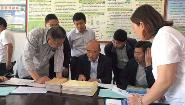 在横水镇加堡村,薛玉马仔细查看了脱贫花名册,帮扶日记及一户一档等精准扶贫材料,对该村的扶贫攻坚工作给予充分肯定,认为态度端正,工作细心,底子清,工作实。