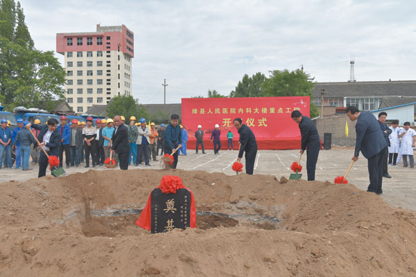政府副县长毕冠军主持县人民医院内科大楼开工仪式。