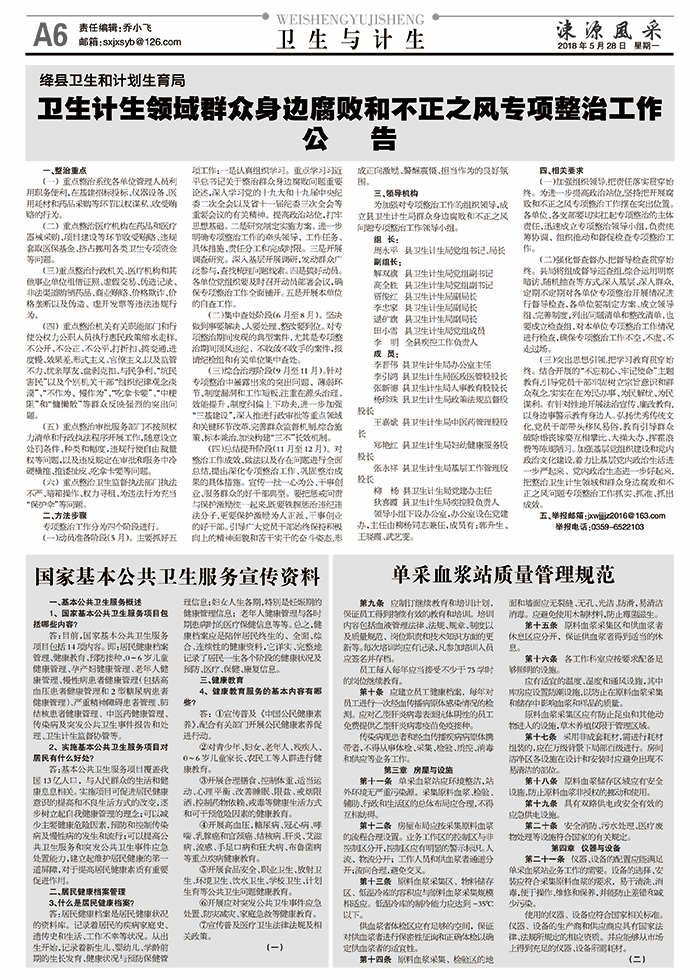卫生计生领域群众身边腐败和不正之风专项整治工作公告