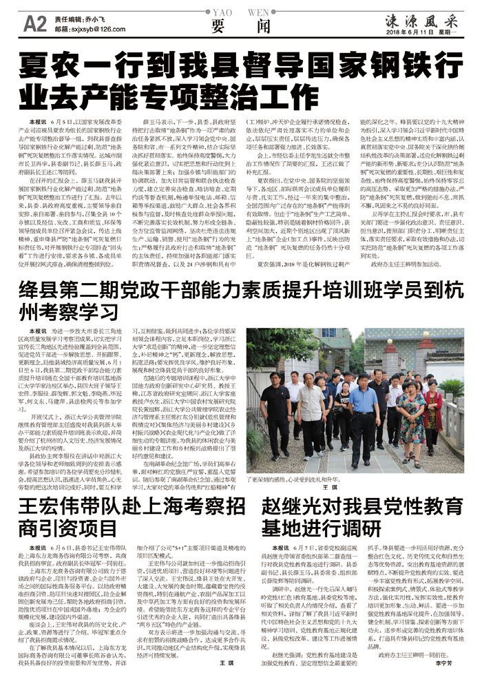 夏农一行到我县督导国家钢铁行业去产能专项整治工作