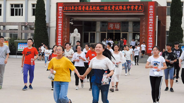 伴随着最后一场科目的考试结束袁我县 1313 名高考考生走出考场袁欢庆高考结束