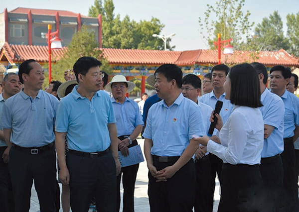6月13日,市委常委、宣传部长王志峰带领全市乡村文化建设流动现场会观摩团一行到我县,就横水镇柳泉村乡村文化大礼堂建设情况进行观摩。市人大常委会副主任张守相,县委书记王宏伟,县委常委、宣传部长解伟龙等一同观摩。