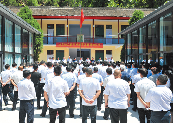 县委书记王宏伟、市老促会会长张道中一同为基地揭牌,大家实地参观迴马岭党性教育基地。