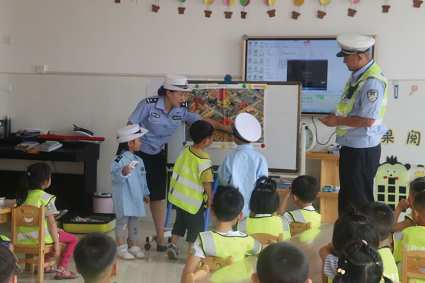 本报讯 6月21日,县公安局交警大队民警携带交通安全宣传“魔法箱”深入绛县第二政府机关幼儿园开展交通安全宣传教育活动,旨在提高学生交通安全意识和自我保护意识,形成文明出行、安全出行的好习惯。