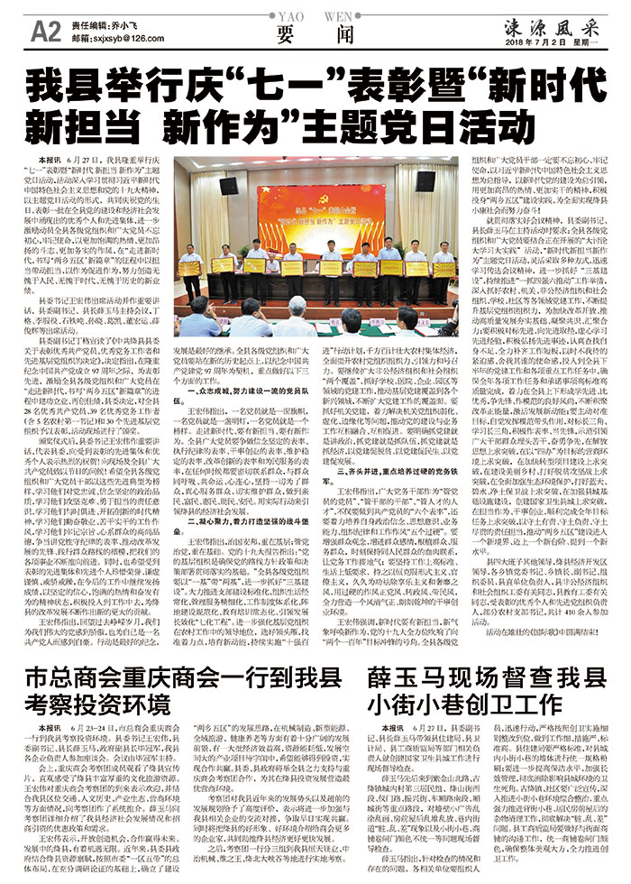 我县举行庆"七一"表彰暨"新时代 新担当 新作为"主题党日活动