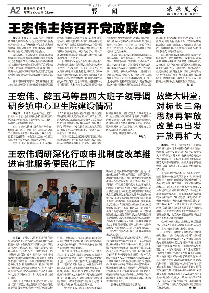 会议传达了省委骆惠宁书记在运城视察调研时的重要讲话精神和《山西省贯彻落实〈地方党政领导干部安全生产责任制规定〉实施细则》的通知精神,听取了关于创建国家卫生县城工作开展情况的汇报和我县落实中央、省委省政府环保督查反馈意见整改暨重点污染治理攻坚行动有关情况的汇报。