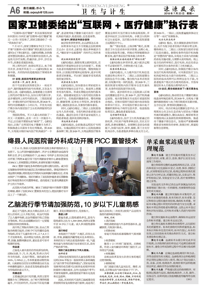7月11日,绛县人民医院普外科在院方和护理部的大力支持下,在山西省肿瘤医院胸外二科护士长曹国珍亲临指导和科主任、护士长积极协作下,由PICC专科护士首次独立成功开展了两例B超引导下经外周静脉穿刺中心静脉置管技术(PICC),穿刺置管过程顺利,患者和家属非常满意。