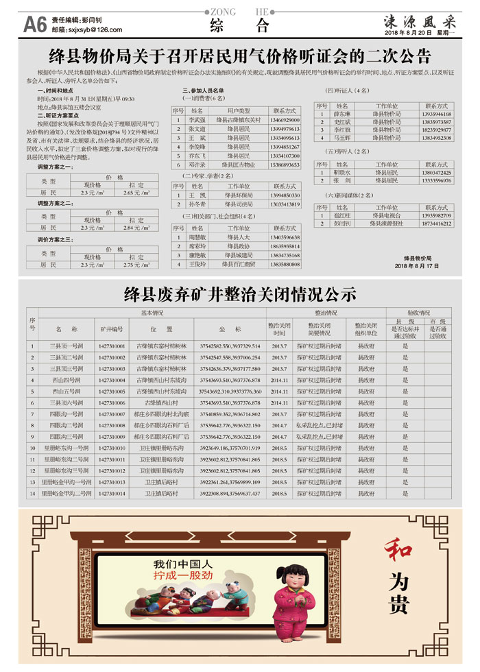 绛县物价局关于召开居民用气价格听证会的二次公告