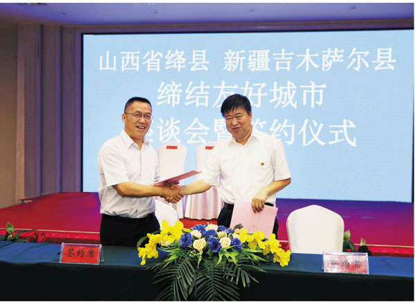 在举行的山西绛县与新疆吉木萨尔县结缔友好城市座谈会暨签约仪式上,吉木萨尔县委副书记、代县长徐雪峰介绍了吉木萨尔县旅游资源及全域旅游推进情况;绛县县委副书记丁格介绍了绛县的基本县情和文化旅游发展情况,大家一同观看了双方旅游形象宣传片。