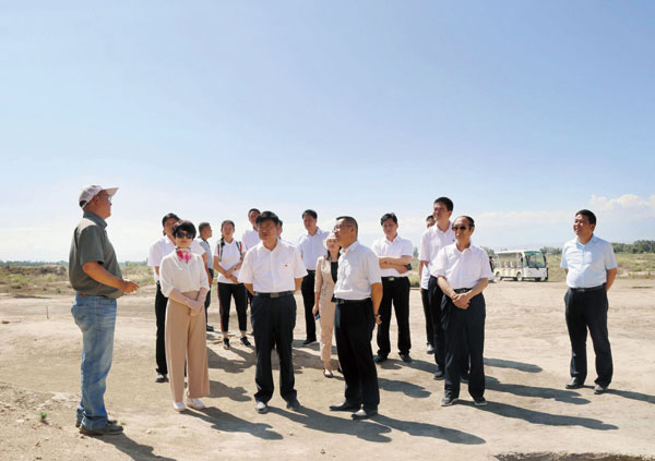 签约仪式结束后,在吉木萨尔县委书记李刚,县委副书记、常务副县长丁鼎,县政协主席陈立荣等的陪同下,王宏伟一行来到北庭故城遗址博物馆进行了参观,并就下一步两地之间在联合招商引资、文创产品研发、城市品牌推广、产业优势互补和人才交流引进等方面加强合作进行了深入交流。