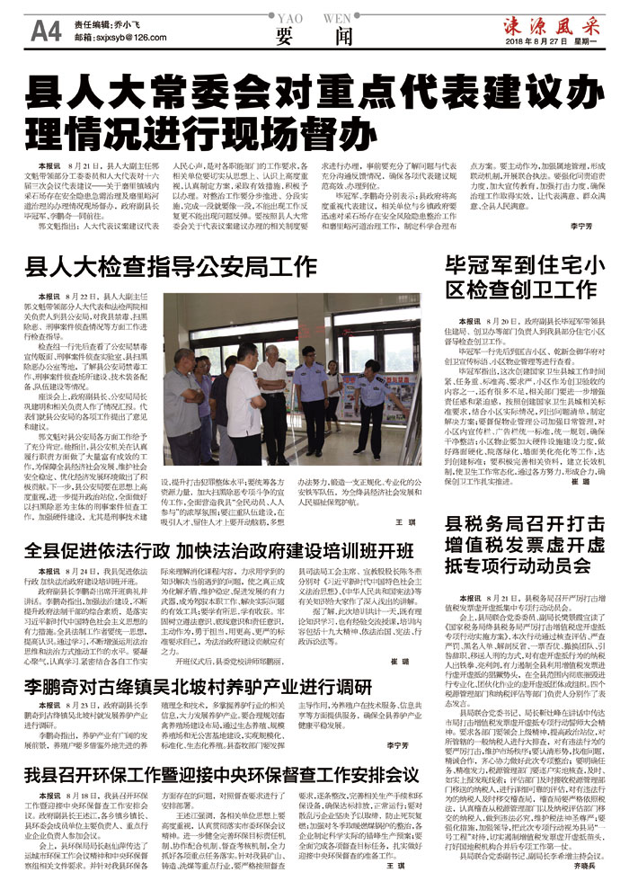 本报讯 8月21日,县人大副主任郭文魁带领部分工委委员和人大代表对十六届三次会议代表建议——关于磨里镇域内采石场存在安全隐患急需治理及磨里峪河道治理的办理情况现场督办,政府副县长毕冠军、李鹏奇一同前往。