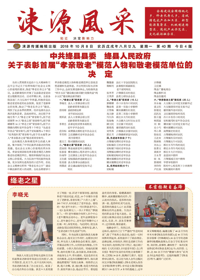 中共绛县县委 绛县人民政府关于表彰首届“孝亲敬老”模范人物和敬老模范单位的决定