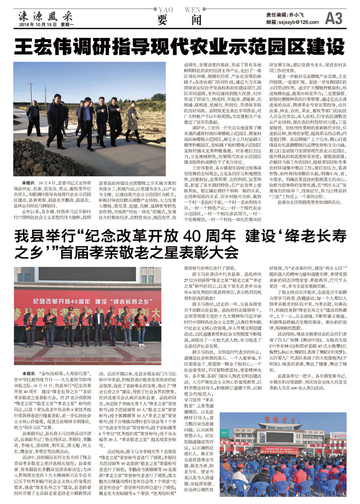 我县举行“纪念改革开放40周年 建设‘绛老长寿之乡’”首届孝亲敬老之星表彰大会
