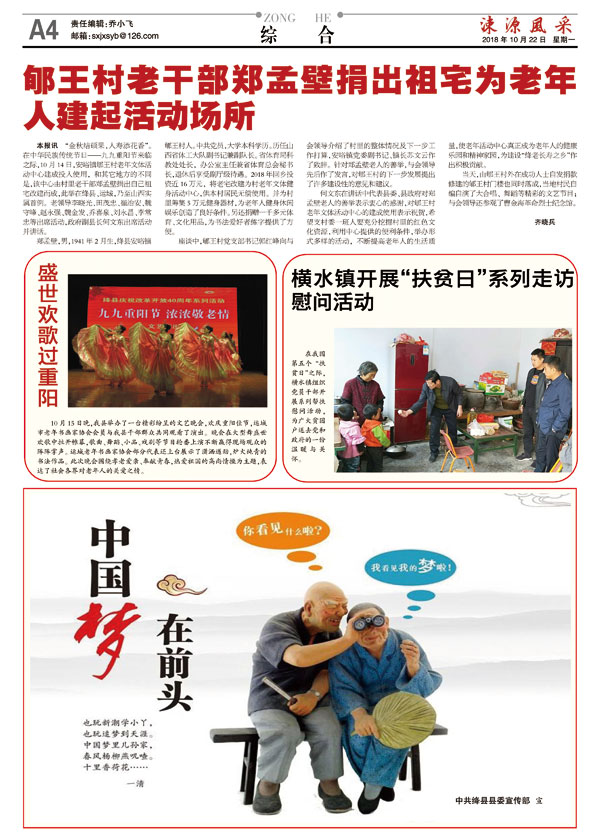 郇王村老干部郑孟壁捐出祖宅为老年人建起活动场所