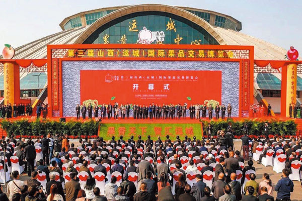 开幕现场,山西省人民政府副省长曲孝丽宣布第三届山西(运城)国际果品交易博览会开幕,运城市委书记刘志宏致开幕词,运城市委副书记、市长朱鹏主持开幕式。