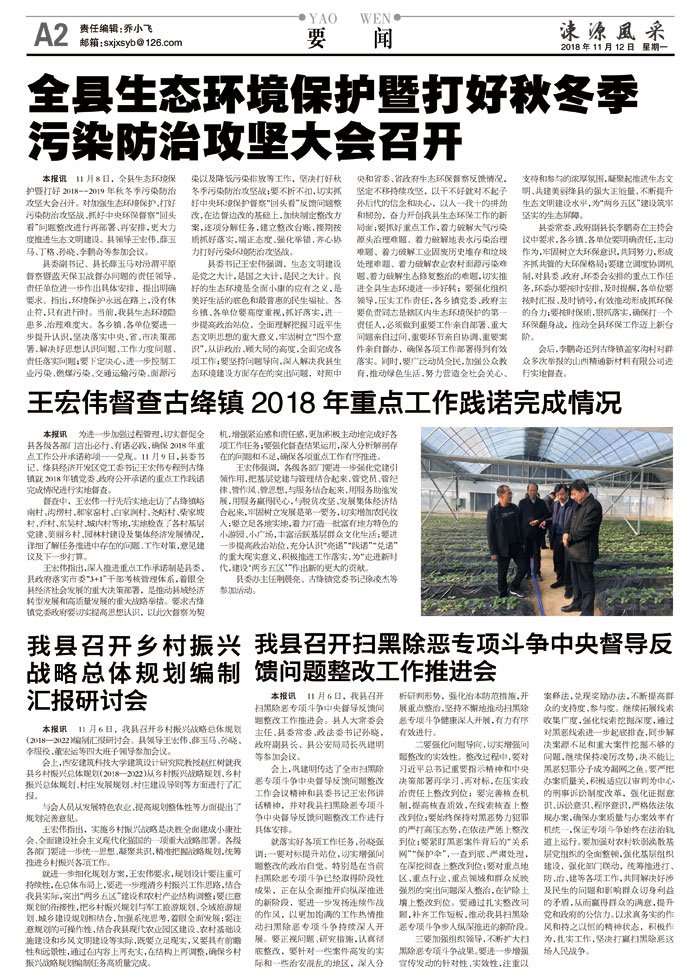 本报讯 11月6日,我县召开乡村振兴战略总体规划(2018—2022)编制汇报研讨会。县领导王宏伟、薛玉马、孙晓、李服役、董宏运等四大班子领导参加会议。