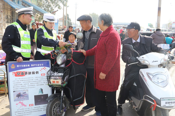 本报讯 为深入推进“压事故 整秩序 保平安”专项整治及农村交通安全管理工作,切实加强农村面包车、农用三轮车载人违法行为的宣传和整治力度,近日,县公安局交警大队宣教科民警利用横水镇逢会这一契机,深入集市进行秋冬季道路交通安全宣传活动。