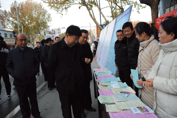活动现场,王宏伟、薛玉马等领导带头向过往群众发放宣传资料,并逐一来到各单位宣传咨询台前,与工作人员亲切交谈,详细了解活动开展情况。