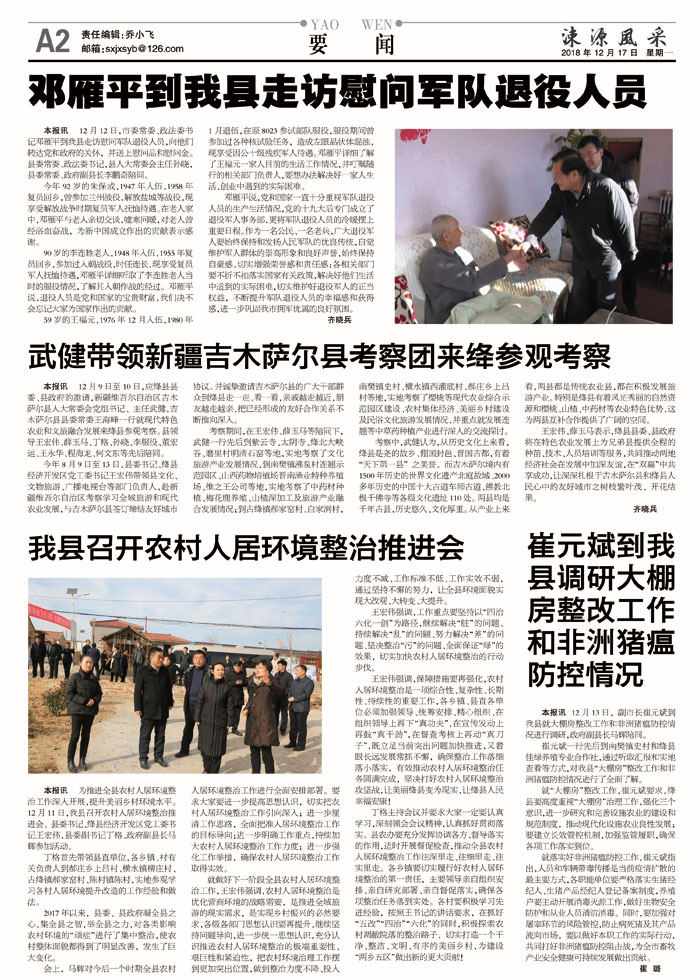 邓雁平到我县走访慰问军队退役人员