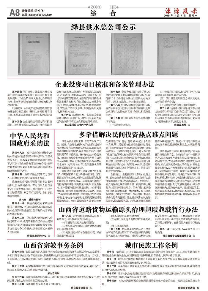 绛县供水总公司公示