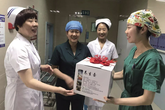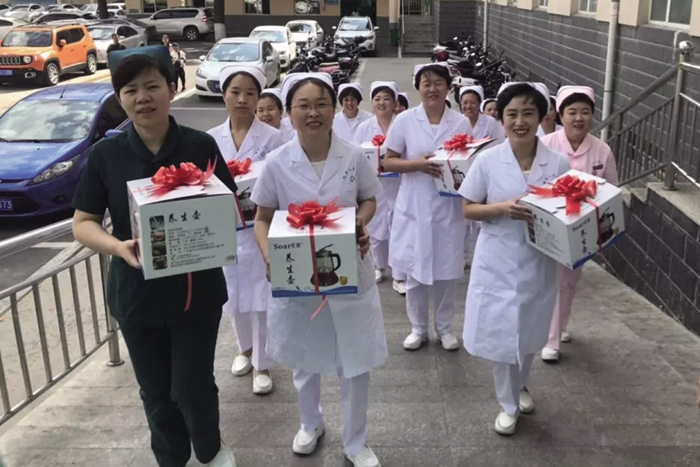 护士节当天护理部刘主任带领全体护士长向工作在一线的护士们送上节日的祝福和问候,并对她们的辛勤工作和无私奉献表示衷心感谢!刘敏主任带着集团领导的嘱托分别到横水分院及南樊分院,送上节日的祝福,并将饱含亲情关爱的蛋糕送到护士们的手中,亲切的问候,浓浓的关爱,温暖了护士们的心。