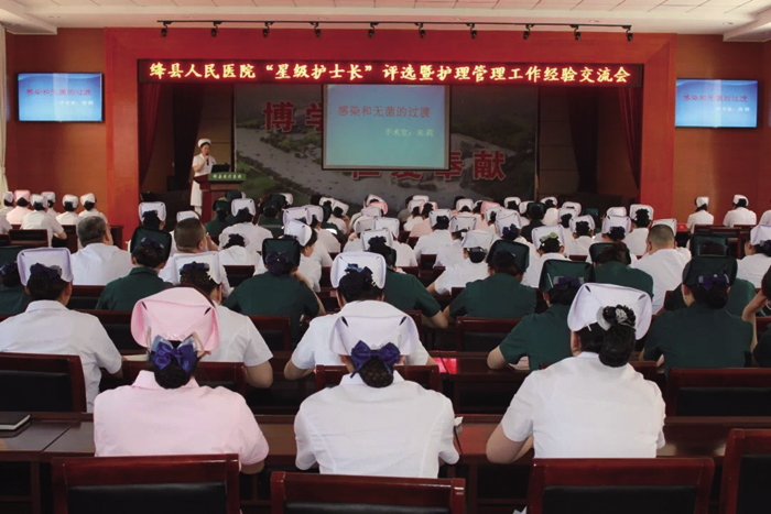 为了激励护理管理人员在优质护理活动中起模范带头作用,以高尚的职业道德和高超的护理技术竭诚服务,恪尽职守,带领护理团队为患者提供温馨、细致,优质高效的护理服务,全面提高医院护理质量和服务水平。护理部开展了星级护士长评选及护理管理经验交流活动,由院委领导、人事科、政工科主任及各科室责任组长担任评委,评选出3名“星级护士长”,护士长们的演讲,不仅是个人才华的展示,也是护理管理经验的分享。