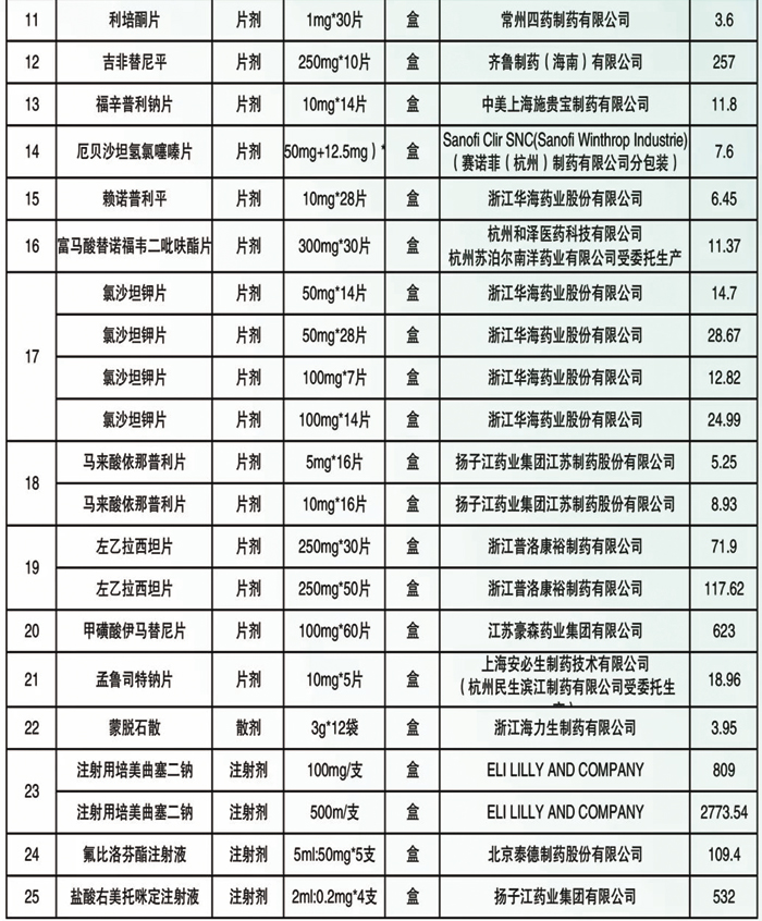 绛县人民医院集中采购药品目录