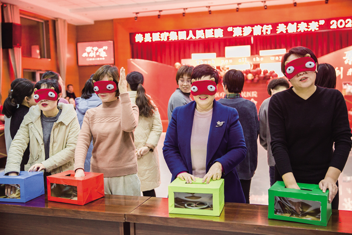 晚会在热闹红火的开场舞中拉开帷幕,护理姐妹们参加的零食接力,吃的是津津有味;护士长们参加的恐惧箱游戏,个个心惊胆战;院领导们参加的夹玻璃球的游戏,尽显手上功夫;各科室主任们参加的“成语猜名”游戏,尽显文化内涵……所有的节目,引起阵阵笑声。