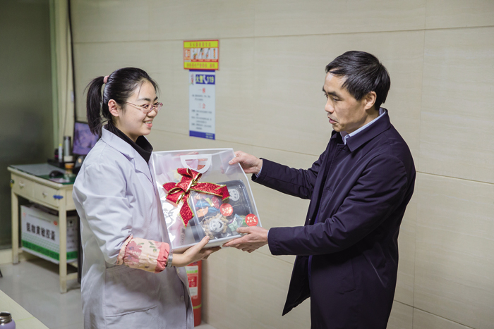 年会结束后樊院长携班子成员到临床科室为奋斗在一线的工作人员送去节日的祝福。