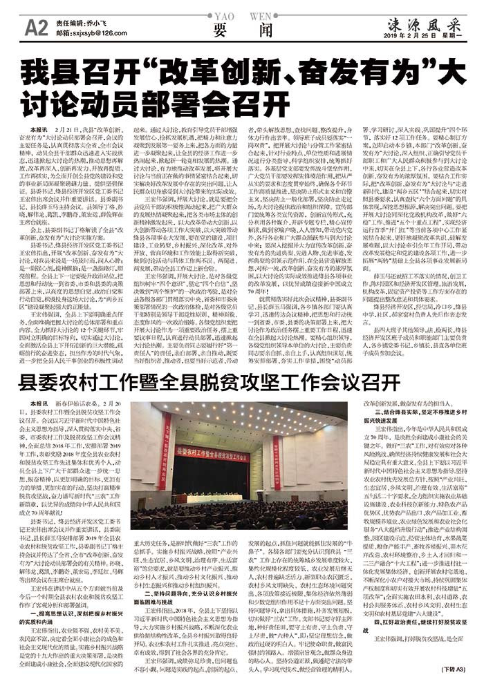 县委农村工作暨全县脱贫攻坚工作会议召开