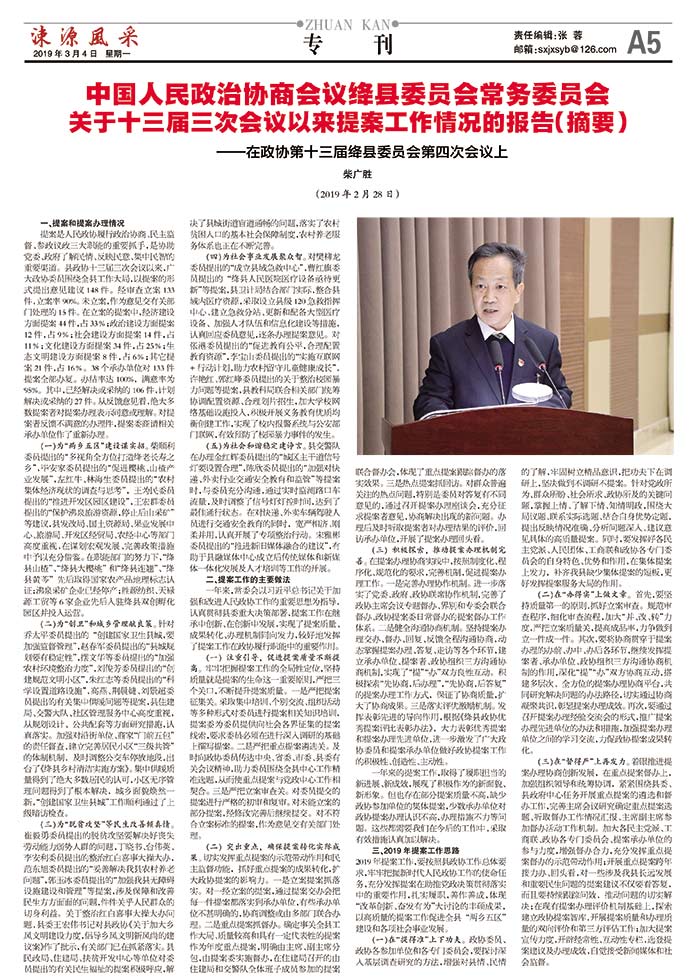 柴广胜(2019年2月28日)中国人民政治协商会议绛县委员会常务委员会关于十三届三次会议以来提案工作情况的报告(摘要)——在政协第十三届绛县委员会第四次会议上