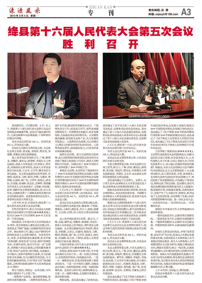 绛县第十六届人民代表大会第五次会议胜利召开