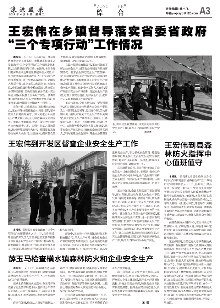 薛玉马检查横水镇森林防火和企业安全生产