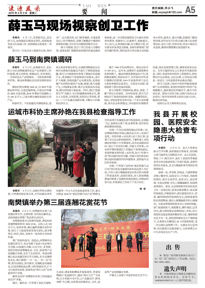 本报讯 4月1日,县委副书记,县长薛玉马,政府副县长程海龙带队,现场检查我县卫生县城工作。政府副县长程海龙一同前往。