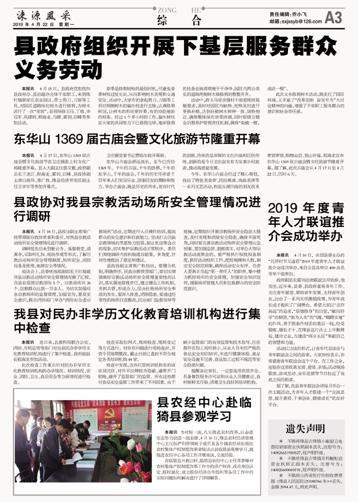 本报讯 4月17日,东华山1369届古庙会暨文化旅游节在卫庄镇张上村文化广场隆重开幕。县人大副主任郭文魁、政府副县长王述江、程海龙、霍剑、田峰、县政协副主席白海珠、柴广胜、绛县经济开发区副主任王学军等参加开幕式。