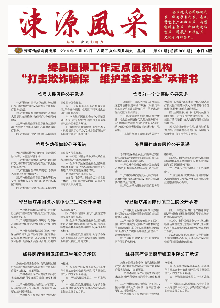 绛县医保工作定点医药机构“打击欺诈骗保 维护基金安全”承诺书