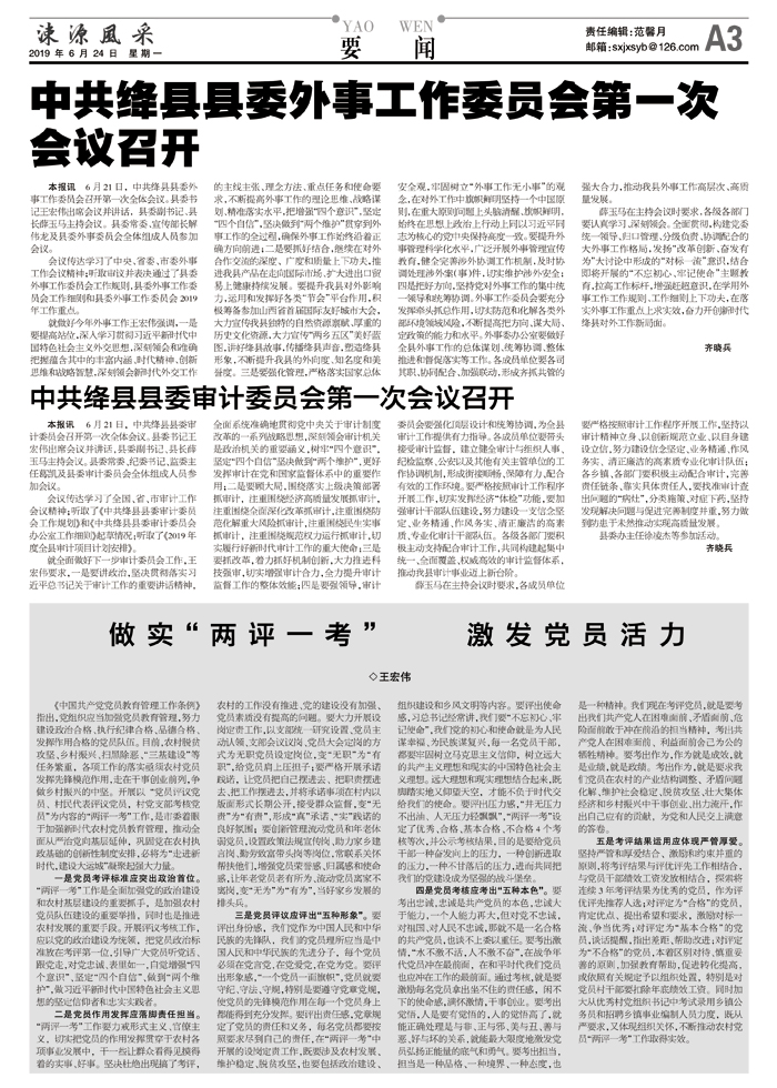 中共绛县县委审计委员会第一次会议召开